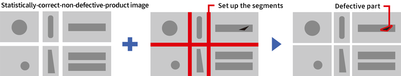 Based on DefFinder®, which statistically judges foreign matter, SegmentDefFinder is a function that makes it possible to more smoothly inspect three-dimensional molded products such as connectors and housing.