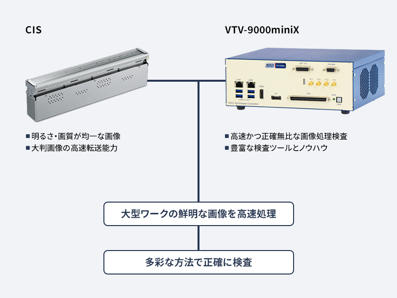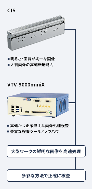 ヴィスコのCIS(Contact Image Sensor、コンタクト・イメージ・センサ)は大型ワークを「1 枚絵」で撮像します。